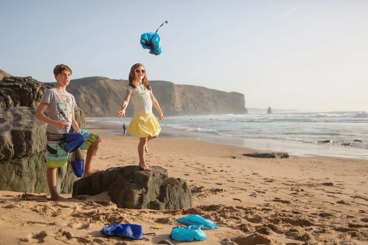 Als jeu de boules, maar dan vliegend! Lanceer de parachutes en probeer de kleine boules zo dicht mogelijk bij het eiland te laten landen. Is jouw boule het dichtstbij?