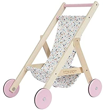Neem je pop mee voor een wandeling! De houten poppenbuggy heeft een schattig Spring Flowers dessin.