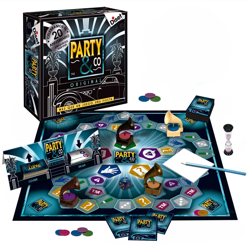Party & Co. Original is een doldwaas spel, een geheid succesnummer op feestjes en spelletjesavonden. Het combineert de beste elementen van de leukste gezelschapsspellen. Het gaat er steeds om een van de vijf soorten opdrachten in het spel binnen 30 seconden te doen. Nu met 2.000 nieuwe vragen en opdrachten.Kom maar op! Wedden dat je niet kunt ophouden met spelen… en lachen!