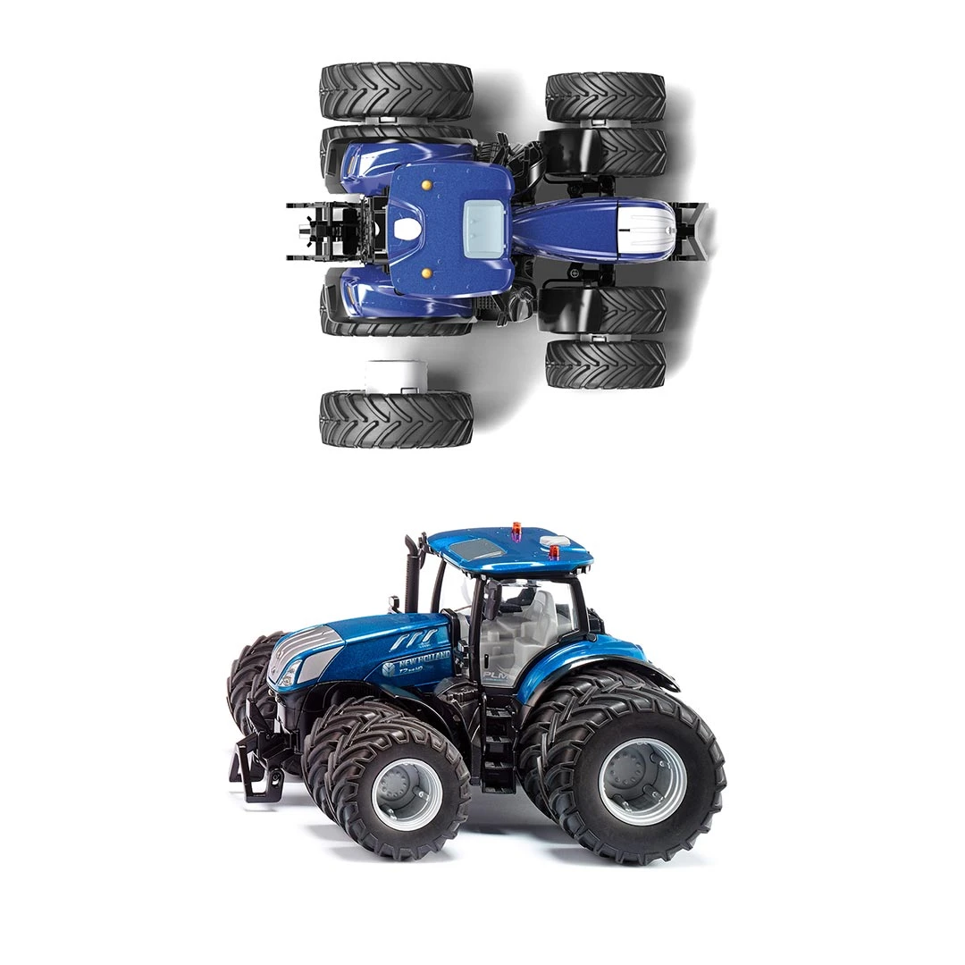 Radiografisch bestuurbare New Holland tractor met dubbellucht van Siku in schaal 1 : 32.