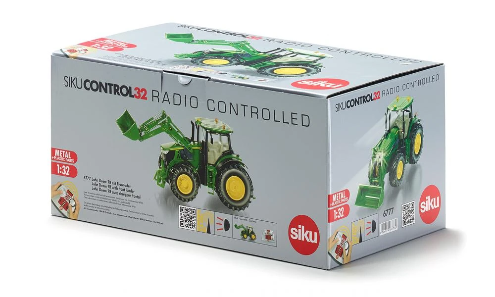 Na de succesvolle modellen John Deere 8345R, John Deere rupstractor en de Fendt 939 met voorlader komt Siku in de herfst van 2014 met een nieuw model Remote Control tractor met voorlader en luxe remote control; te weten de JOHN DEERE 7R met voorlader. Deze set wordt geleverd inclusief oplader, accu en afstandsbediening. Met de afstandsbediening kan de tractor vooruit, achteruit, links en rechts sturen. Ook de lichten kunnen worden bediend alsook de hydrauliek aan de achterzijde. De voorlader van deze tractor kan omhoog/omlaag en kantelen.