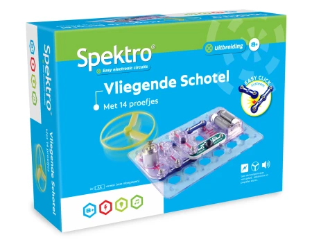 Met 14 opgaven ontdek je stap voor stap alles over de werking van eenvoudige elektrische schakelingen. Je kunt stroom laten lopen en onderbreken. Met een schakeling kun je onder andere een propeller omhoog laten vliegen!