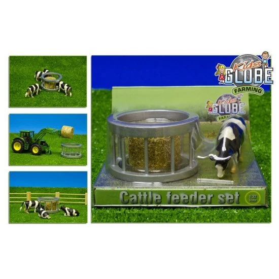 Uiteraard moeten de koeien ook een keer eten. Dit kan met deze handige voerring. In de voerring past een ronde hooibaal (bijgeleverd). Deze voederring kan in het land gezet worden of in de stal geplaatst. Met de tractor met frontlader kan de hooibaal in de voerring gelegd worden. Zo kunnen de jonge boeren net als in het echt hun koeien voeren.